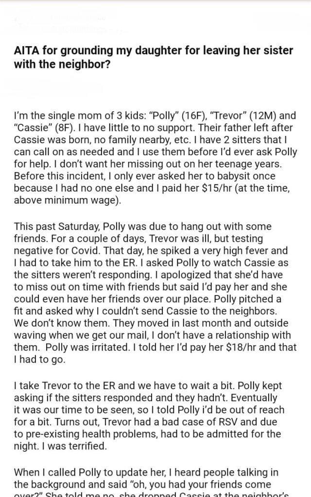 AITA for my daughter for leaving her sister with the neighbor?