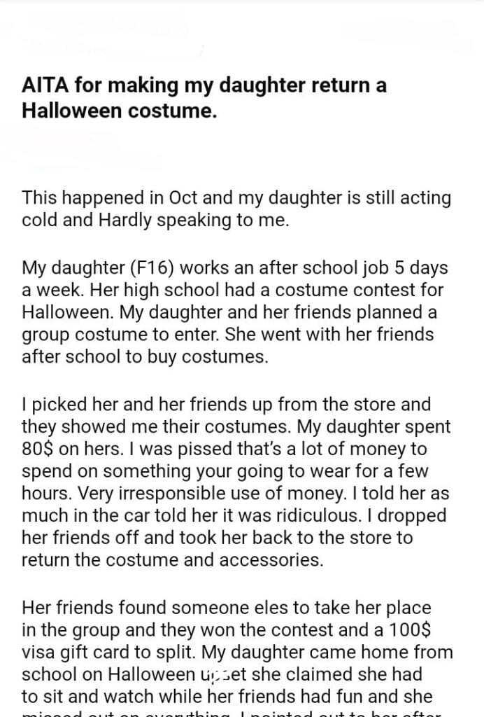 AITA for my daughter Halloween costume.