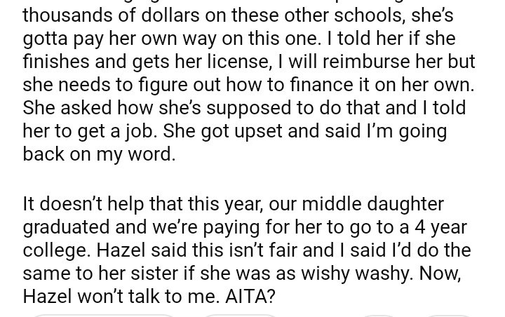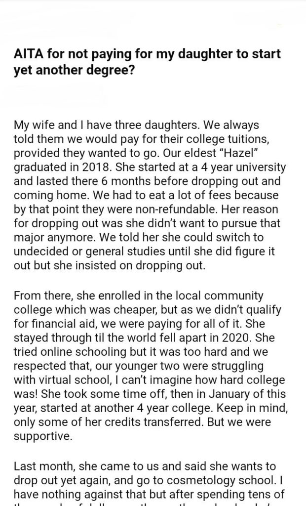 AITA for my daughter to start yet another degree?