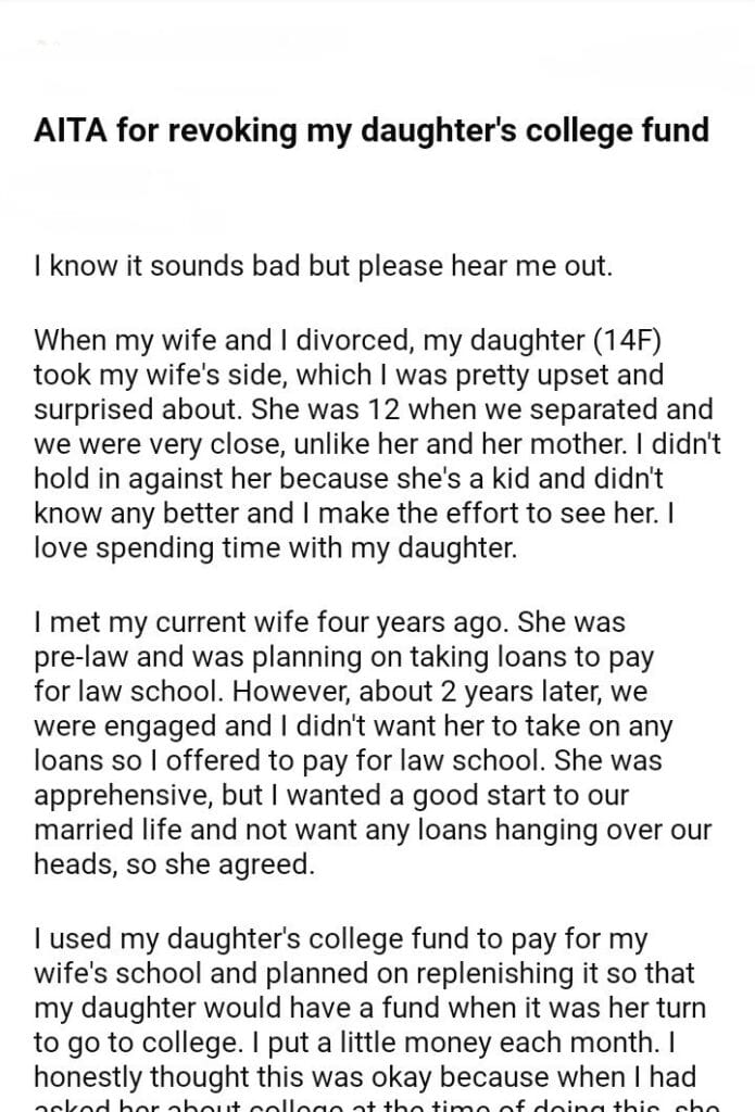AITA for my daughter’s college fund