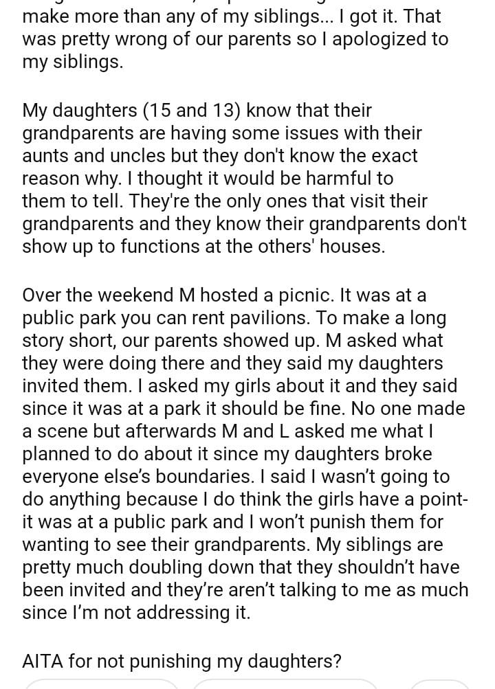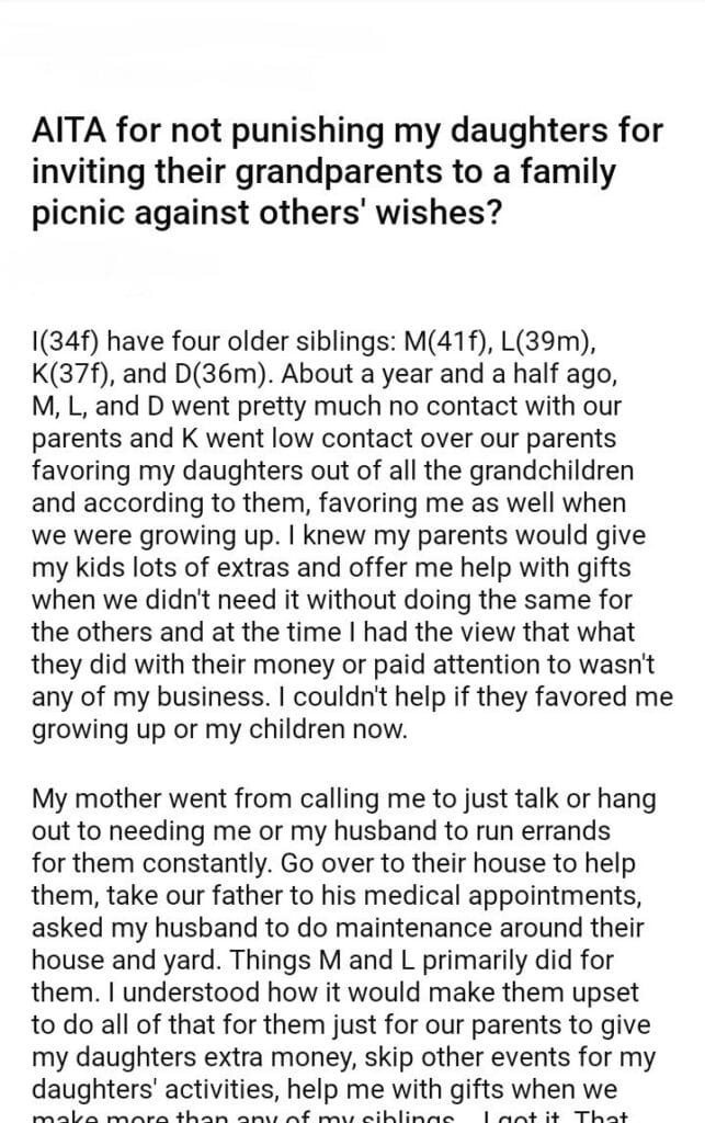 AITA for my daughters for inviting their grandparents to a family picnic