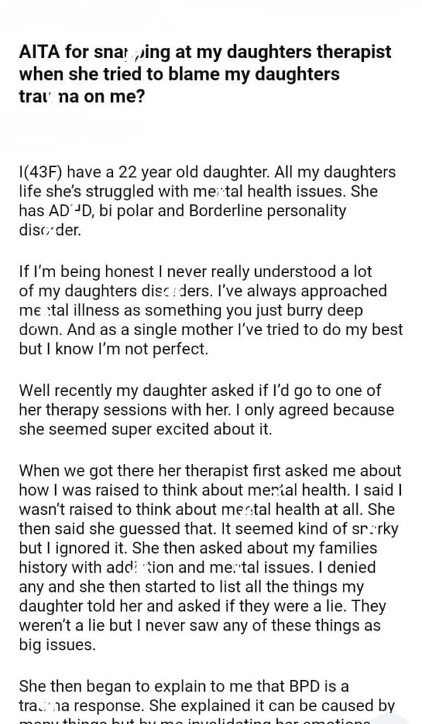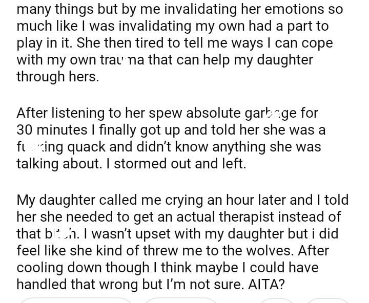 AITA for my daughters therapist when she tried to