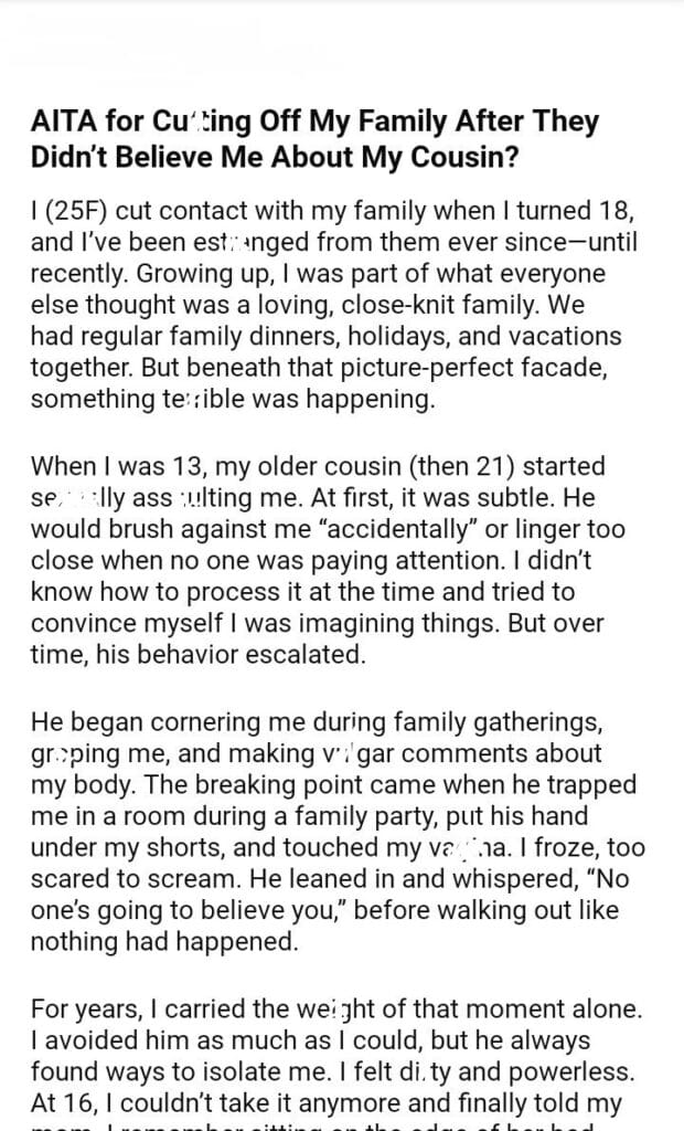 AITA for My Family Didn’t Believe Me About My Cousin?