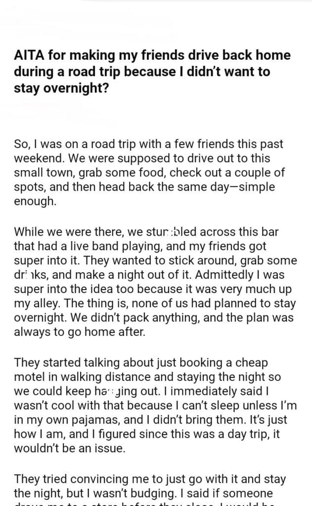 AITA for my friends drive back home