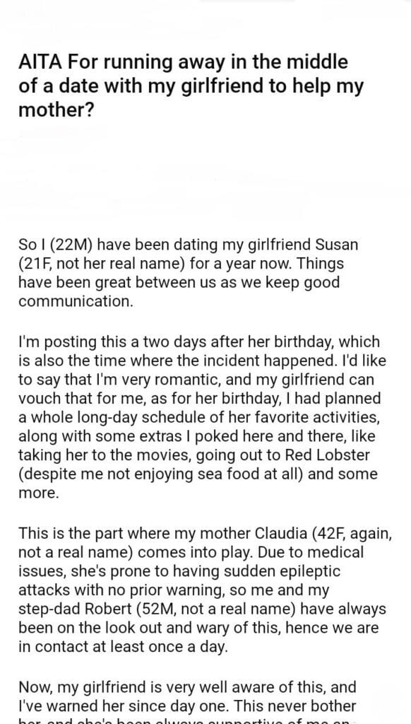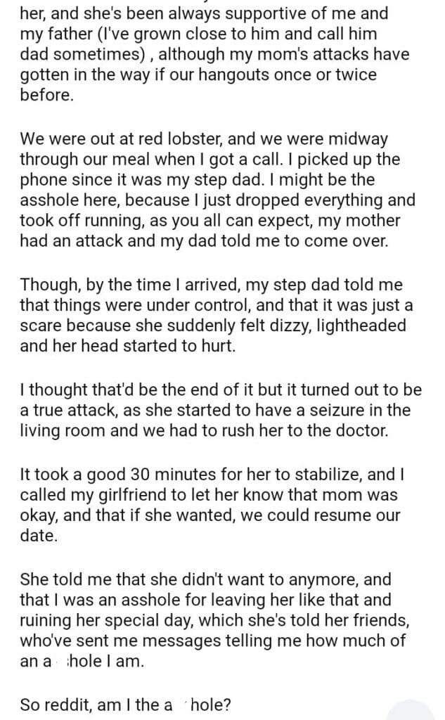 AITA For my girlfriend to help my mother?