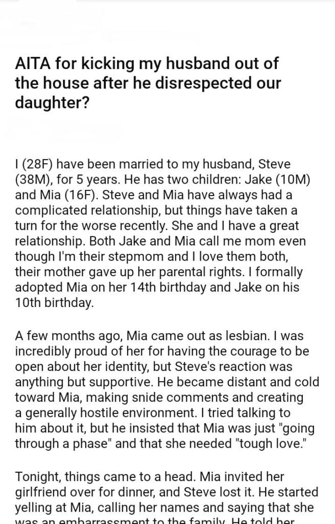 AITA for my husband after he disrespected our daughter?