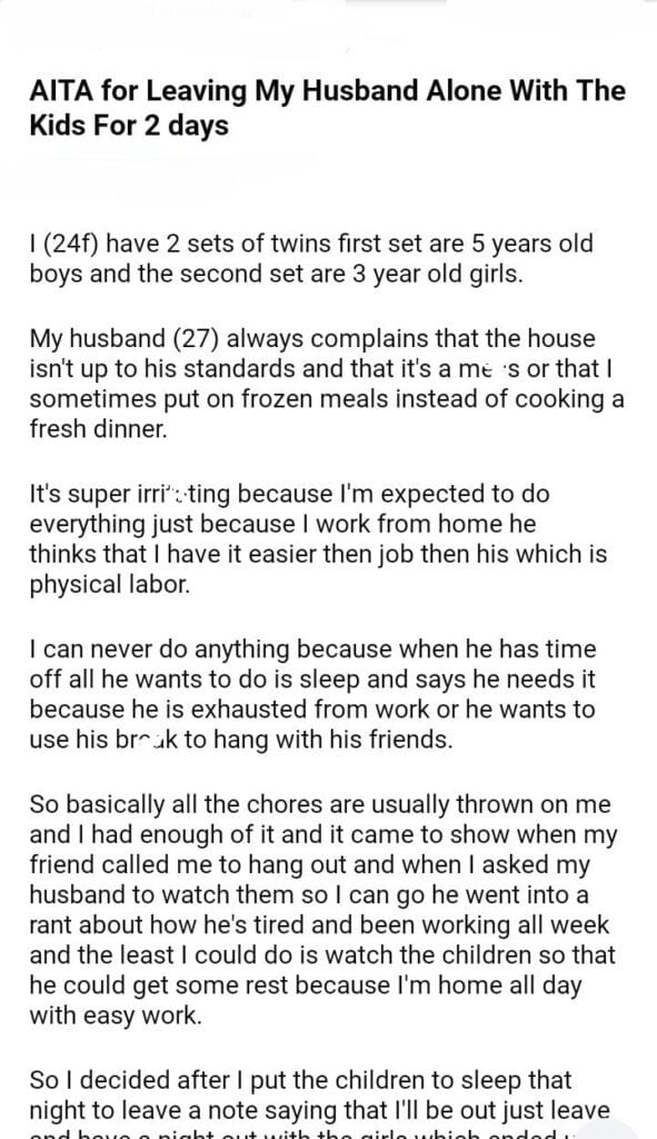 AITA for My Husband Alone With The Kids