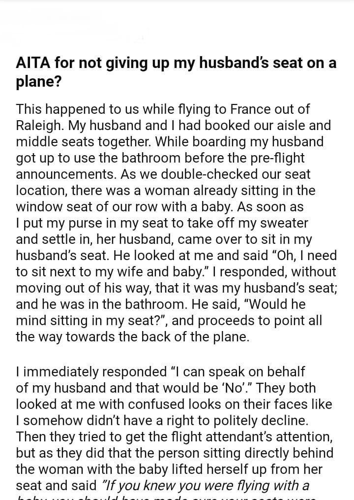AITA for my husband’s seat on a plane?
