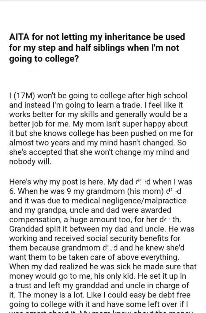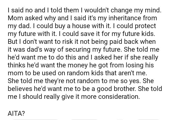 AITA for my inheritance be used for my siblings