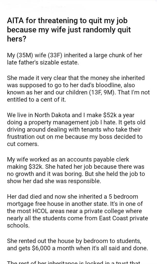 AITA for my job because my wife just randomly quit hers?