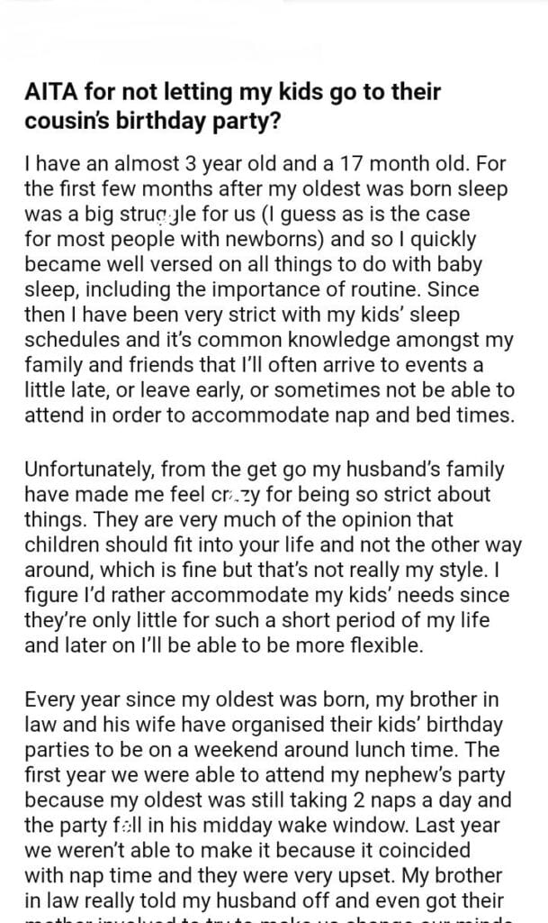 AITA for my kids go to their cousin’s birthday party?