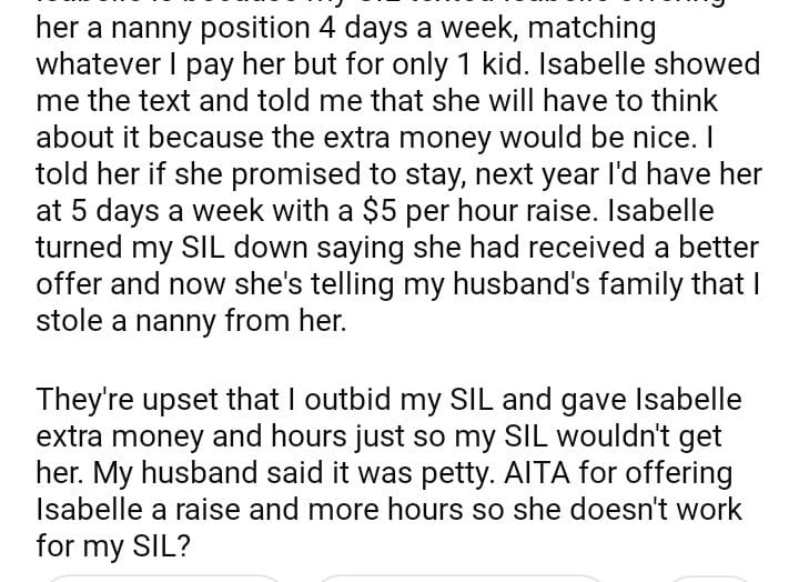 AITA for my kids nanny more money/hours