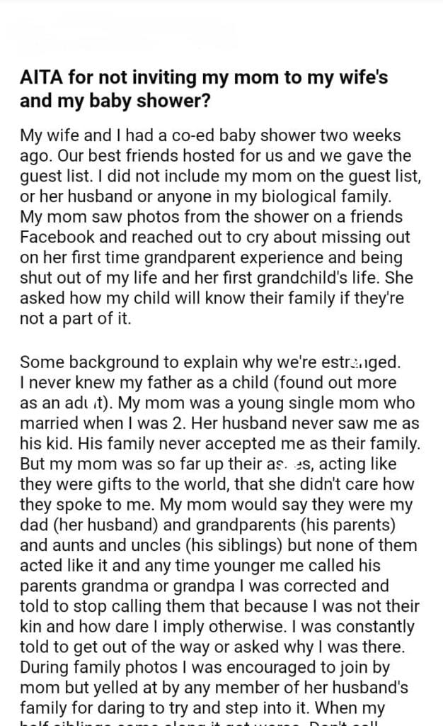 AITA for my mom to my wife’s and my baby shower?