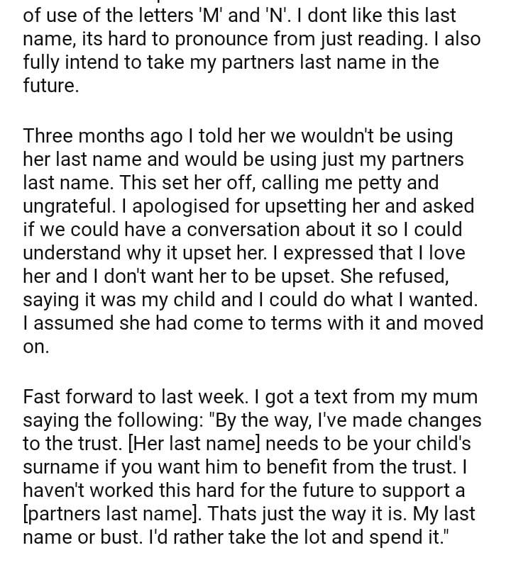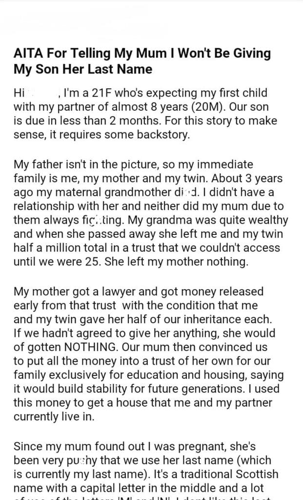 AITA For My Mum I Won’t Be Giving My Son Her Last Name