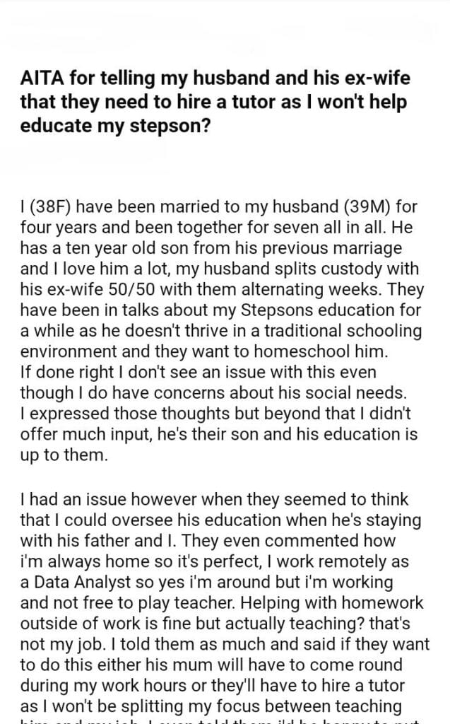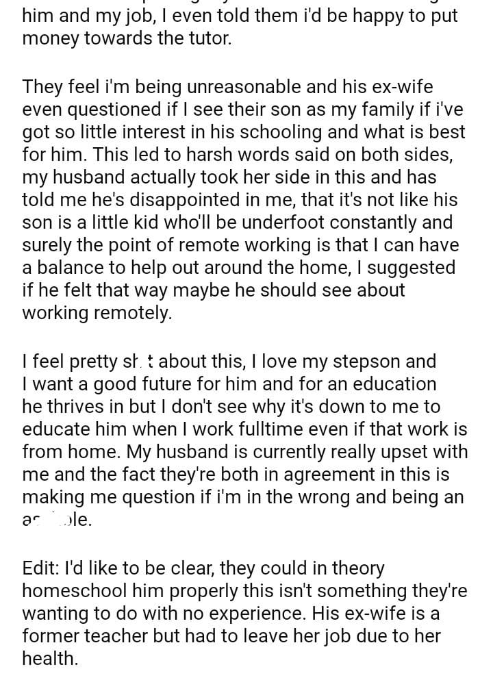 AITA for my my stepson education ?