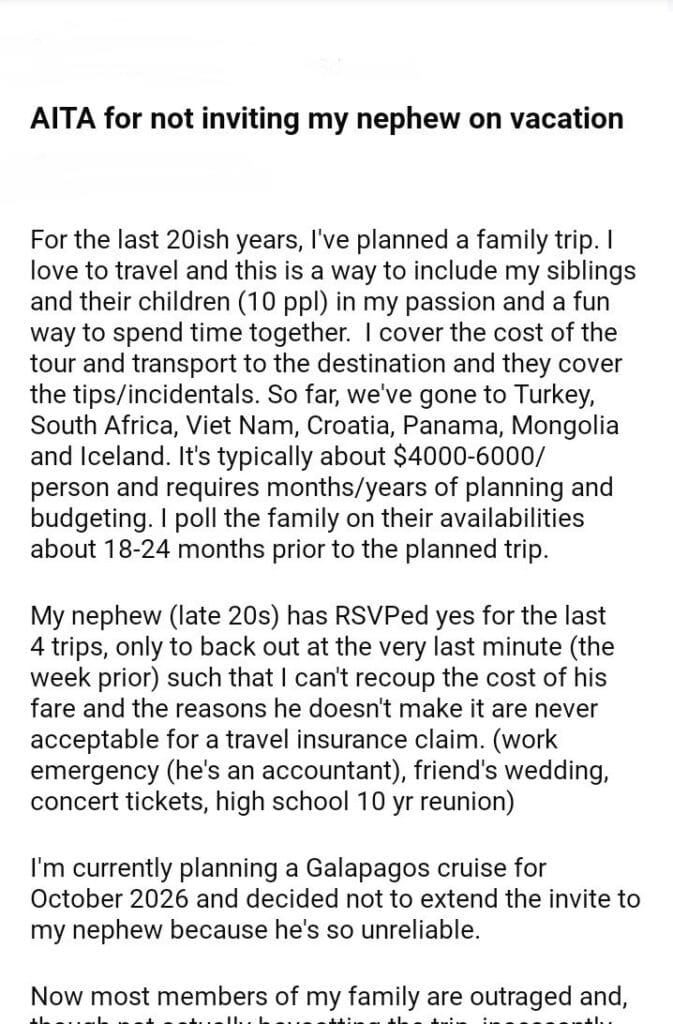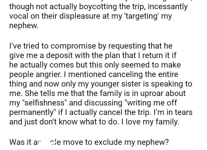 AITA for my nephew on vacation