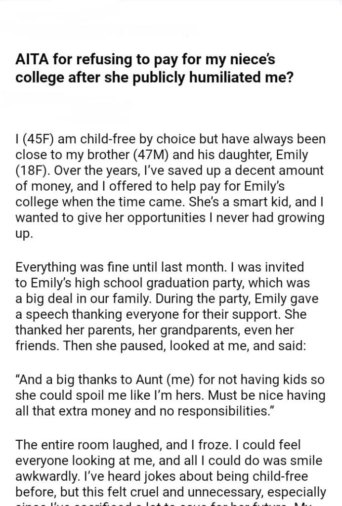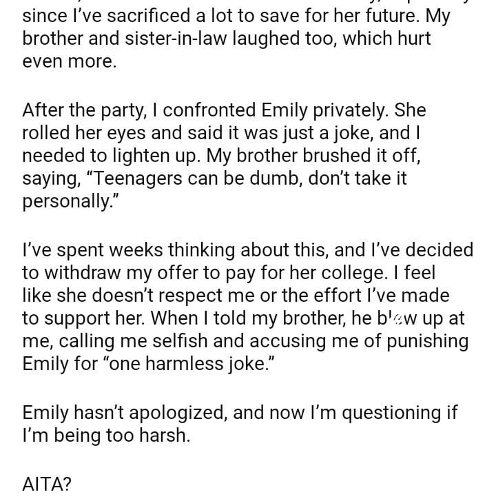AITA for my niece’s college