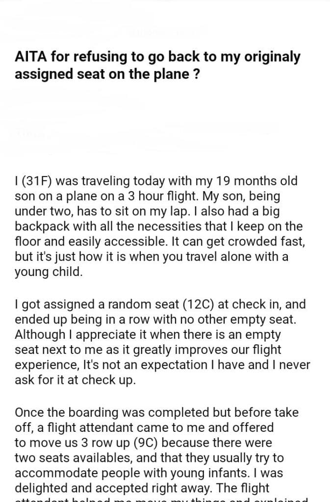 AITA for my originaly assigned seat on the plane