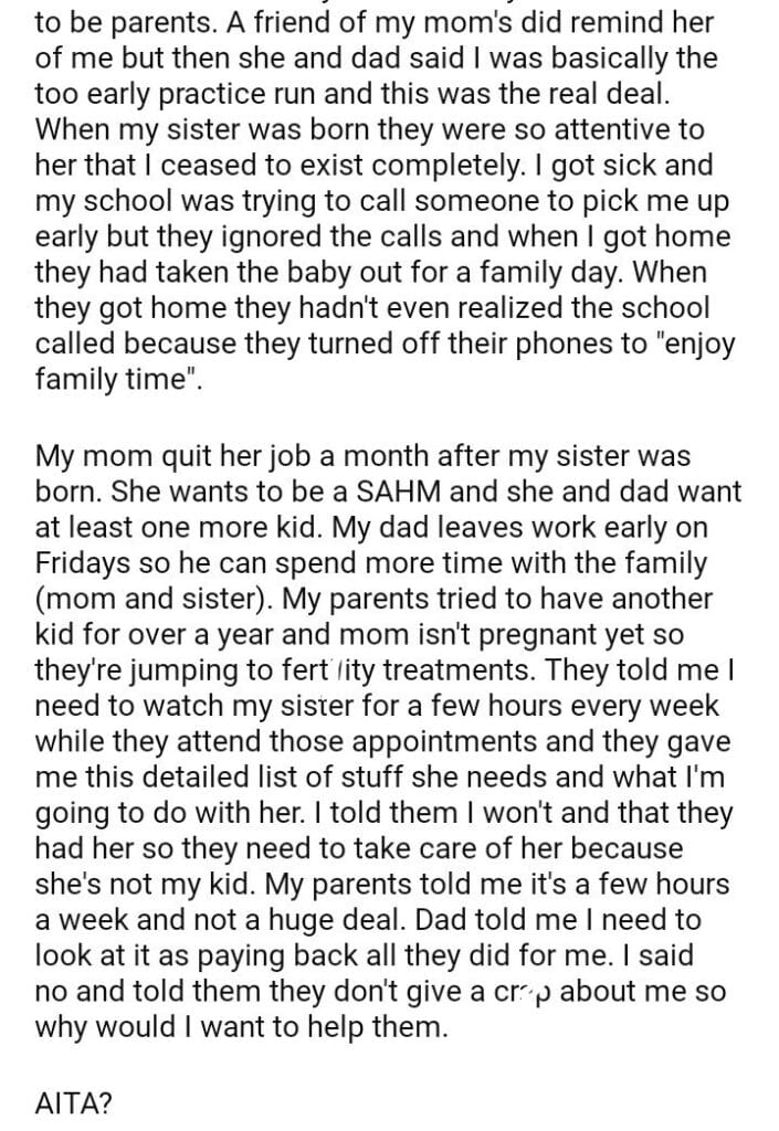 AITA for my parents I didn’t have
