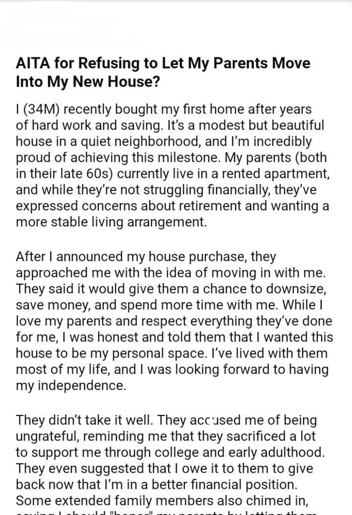 AITA for My Parents in My New House?