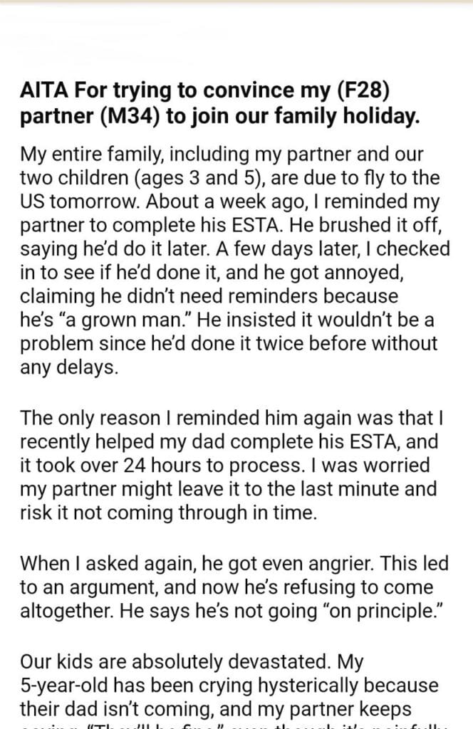 AITA For my partner on our family holiday.