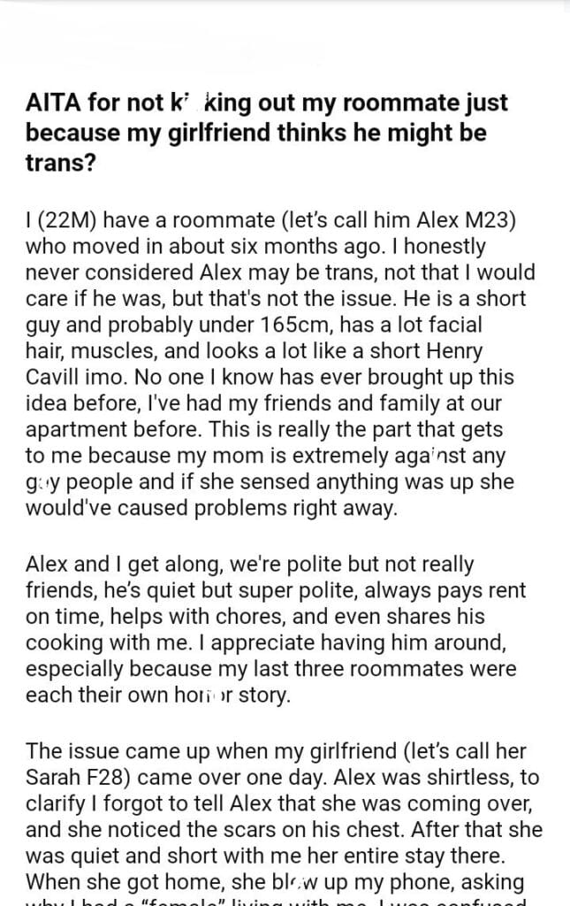 AITA for my roommate just because my girlfriend