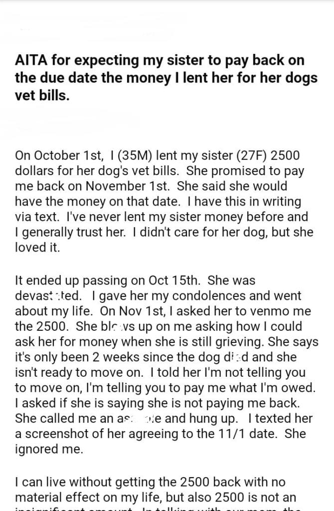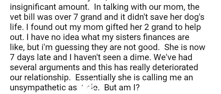 AITA for my sister dogs vet bills.