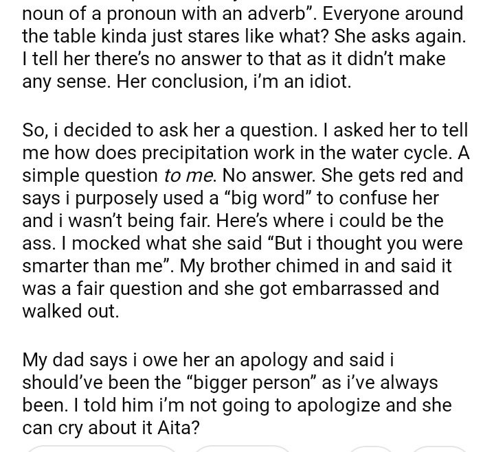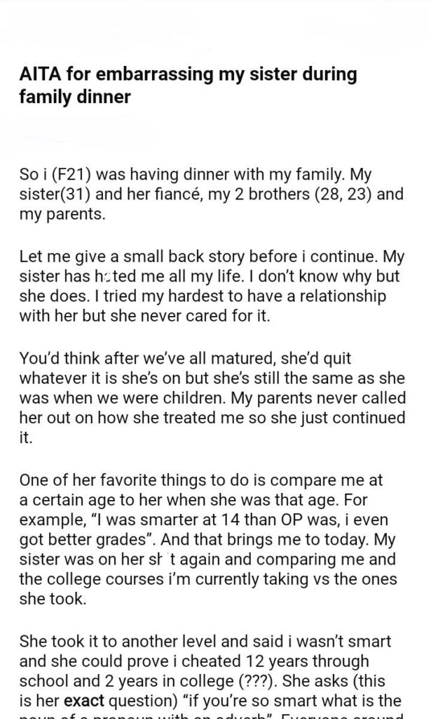 AITA for my sister during family dinner