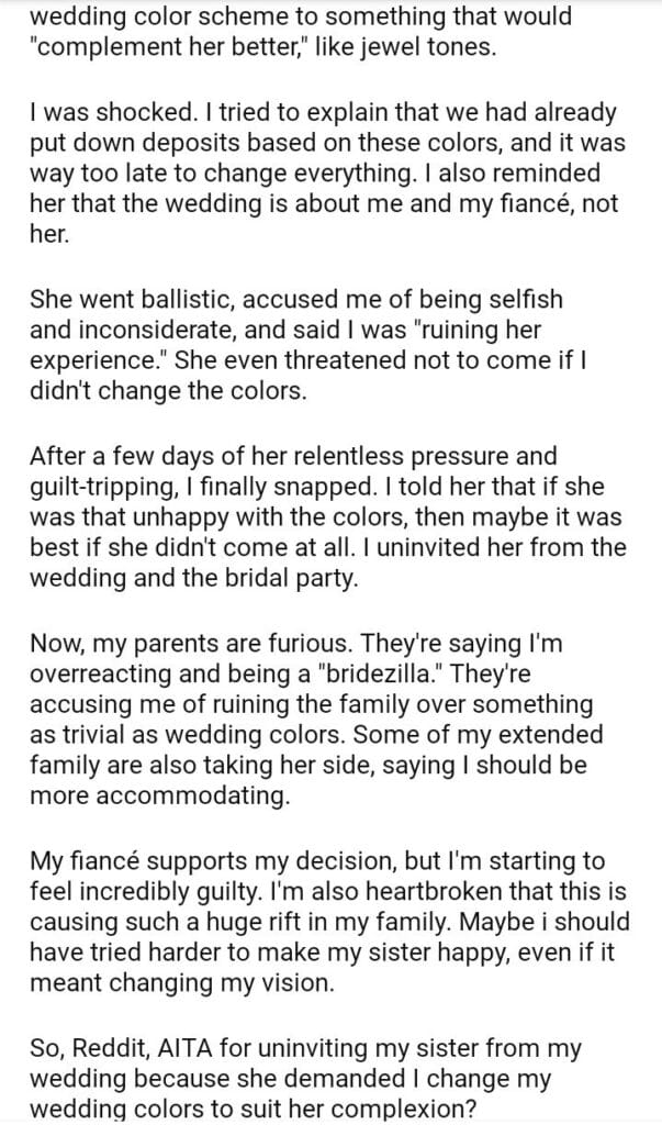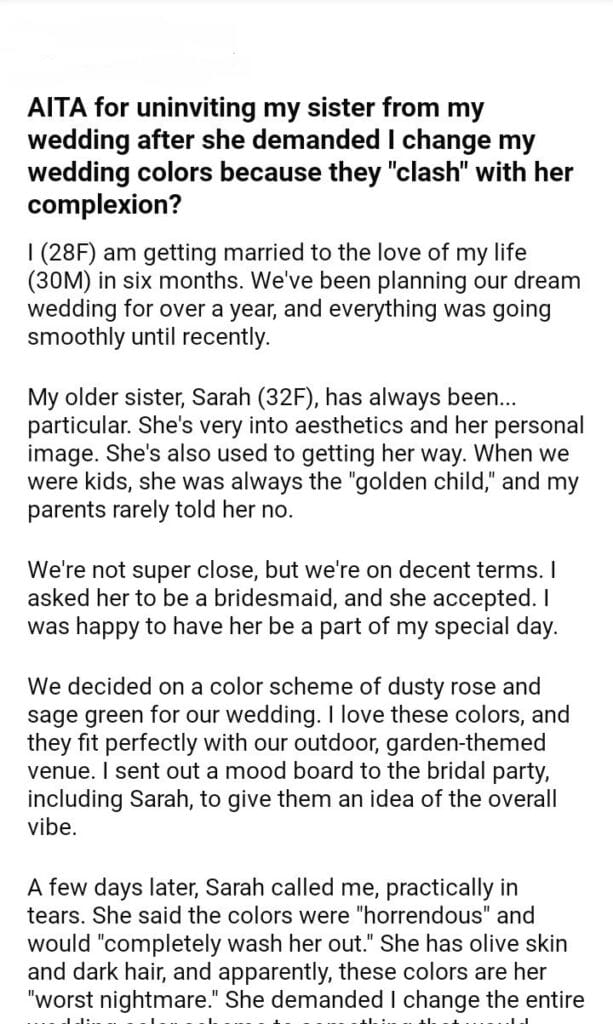 AITA for my sister from my wedding