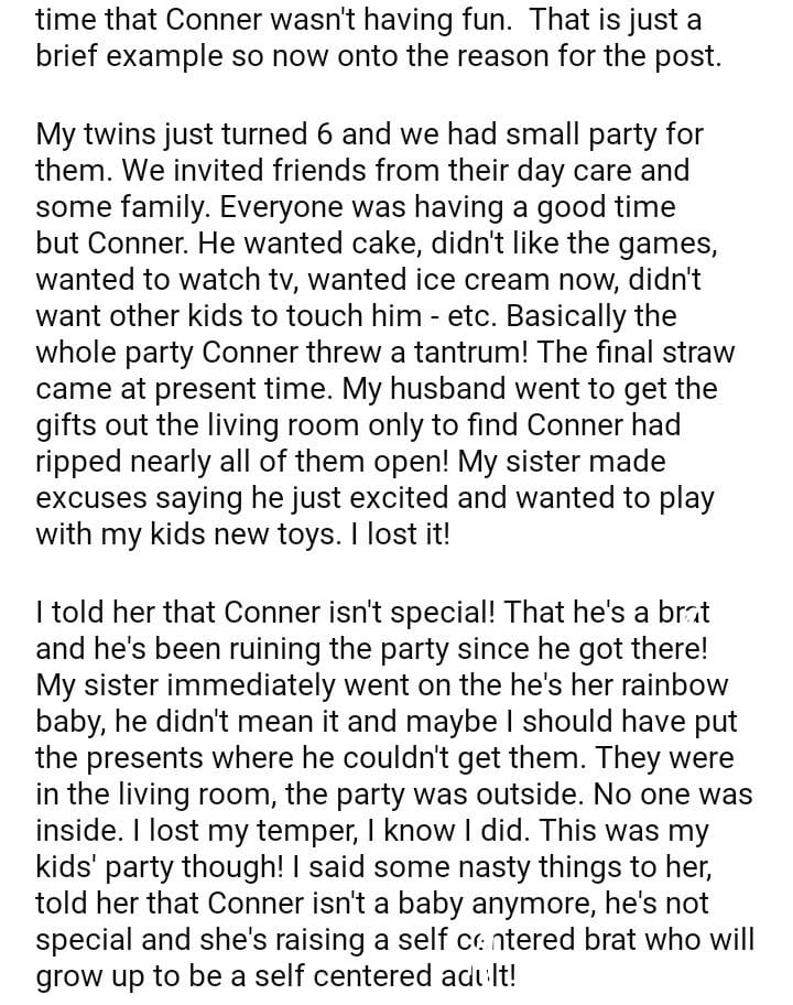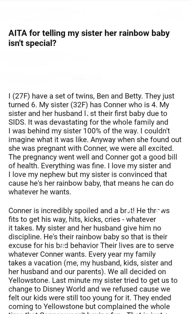 AITA for my sister her rainbow baby isn’t special?