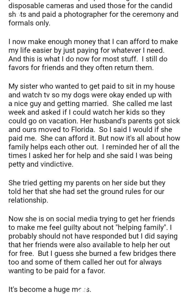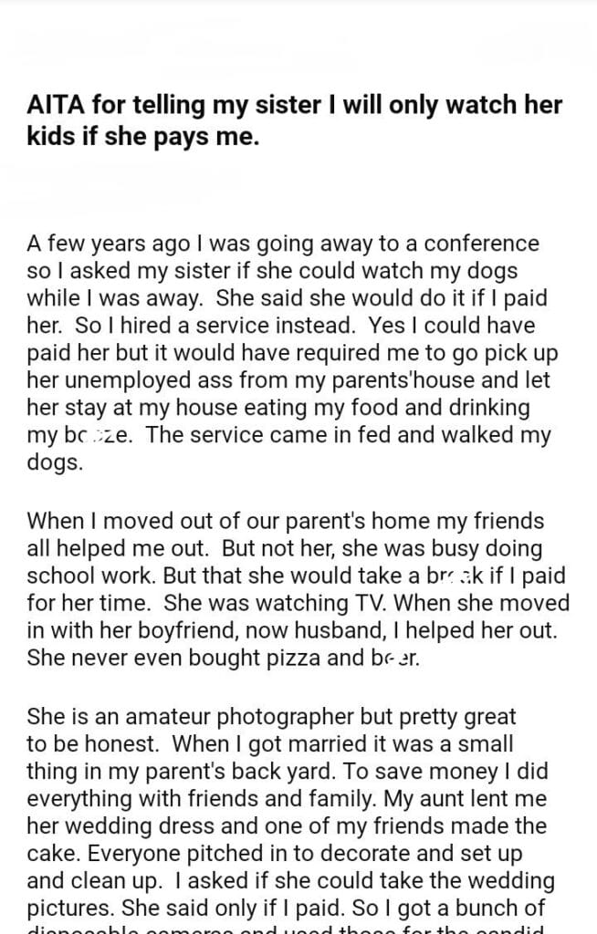 AITA for my sister kids if she pays me.