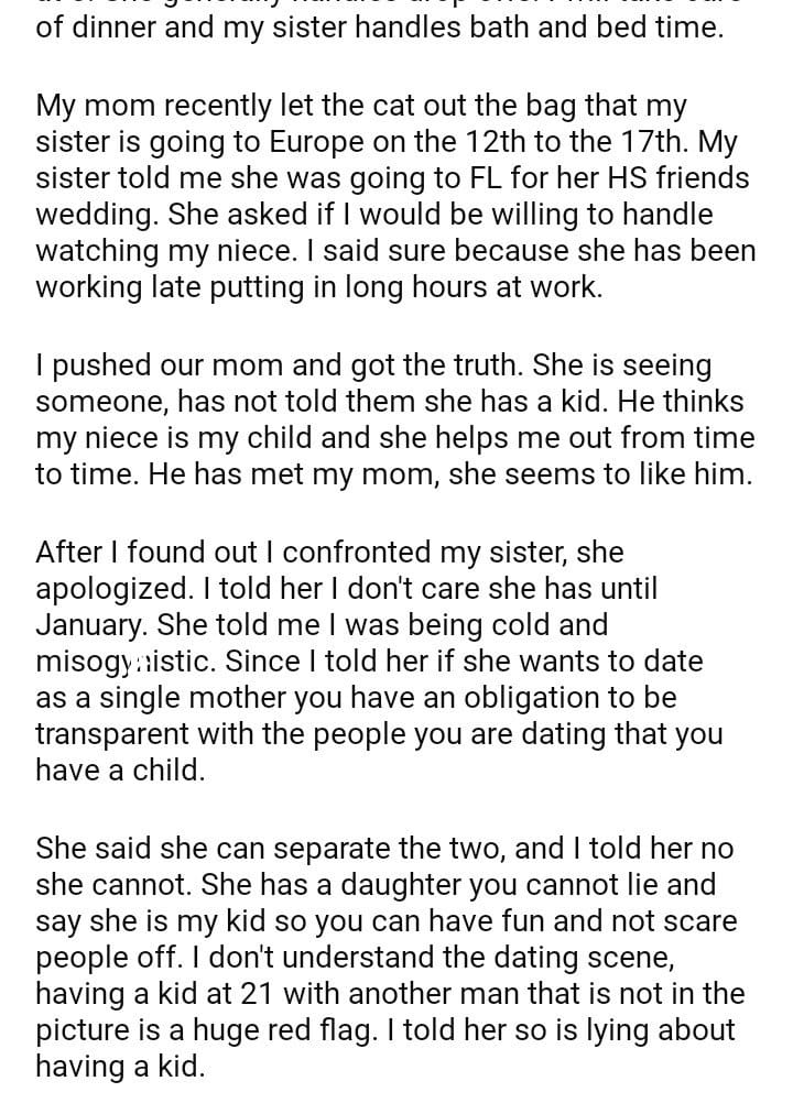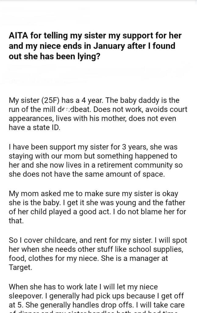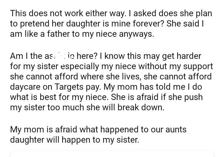AITA for my sister my support for her and my niece