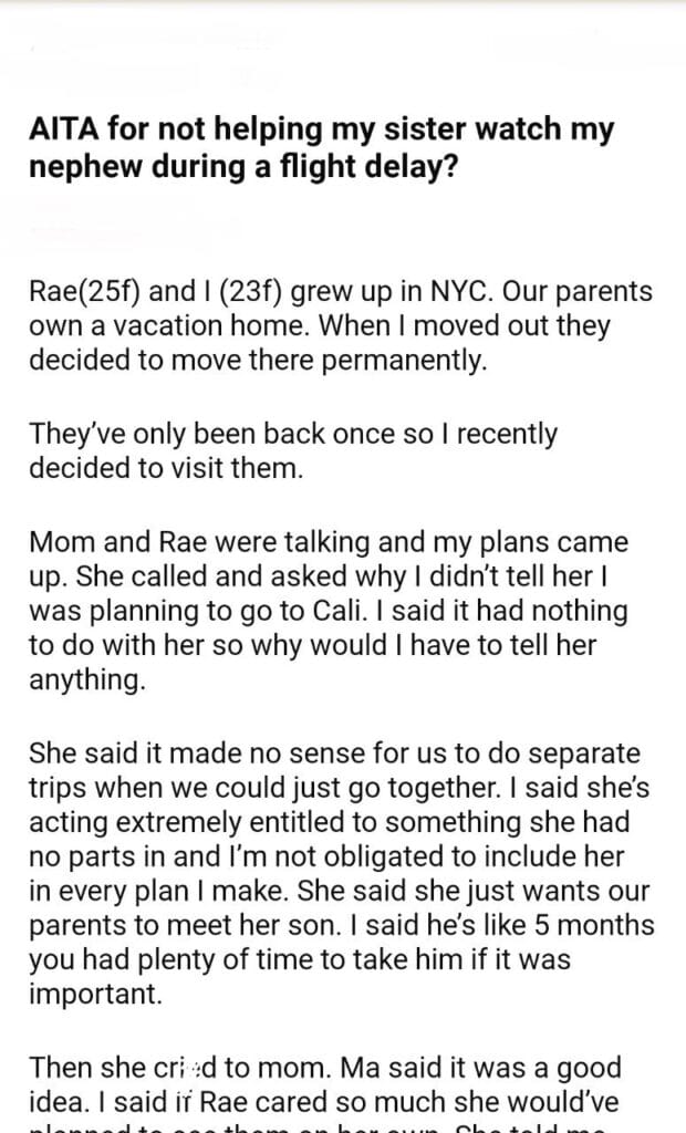 AITA for my sister nephew during a flight