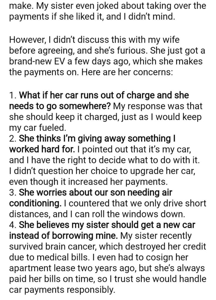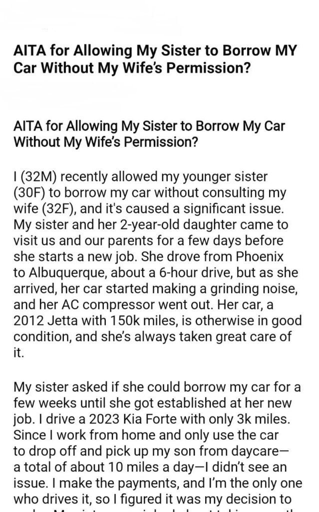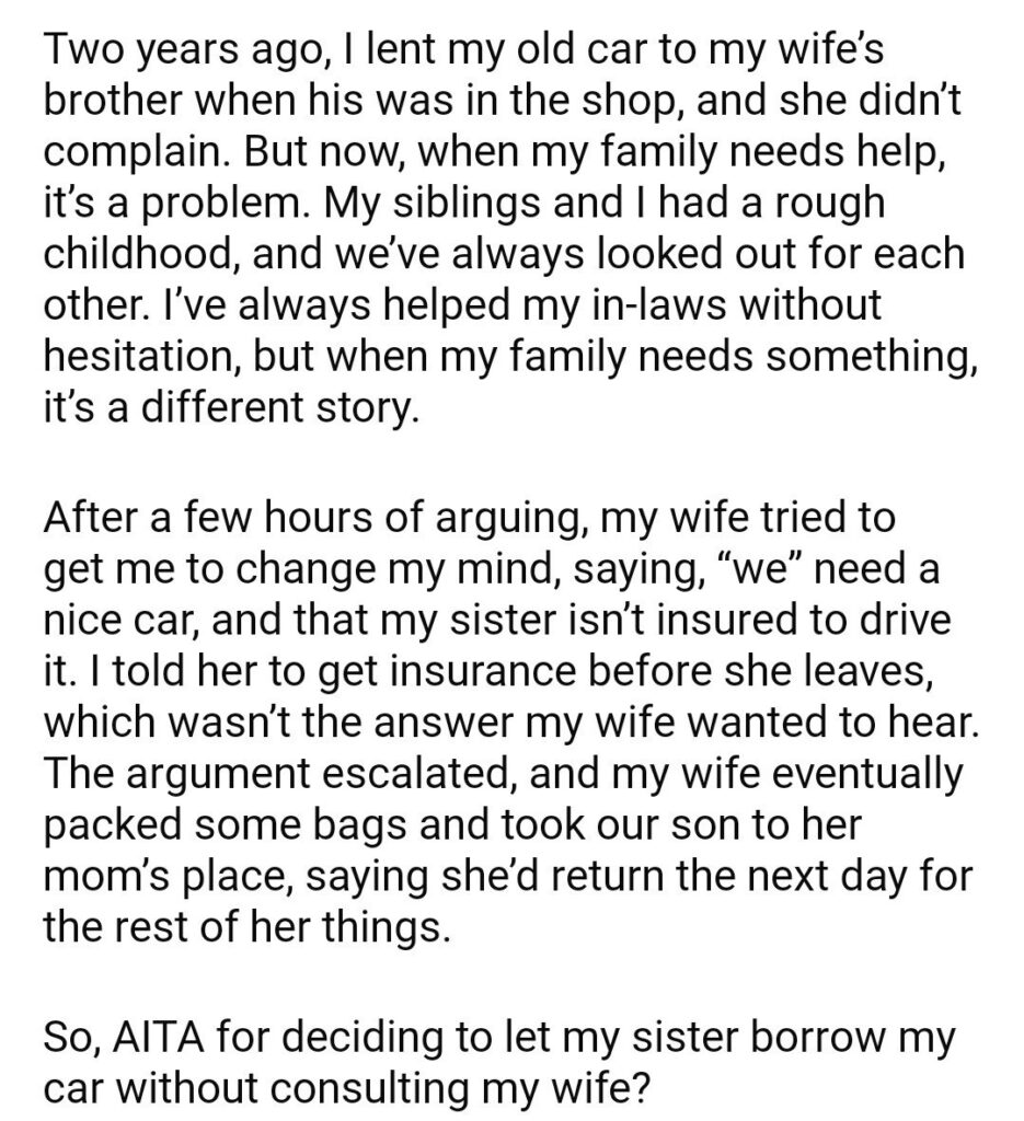 AITA for My Sister to Borrow MY Car