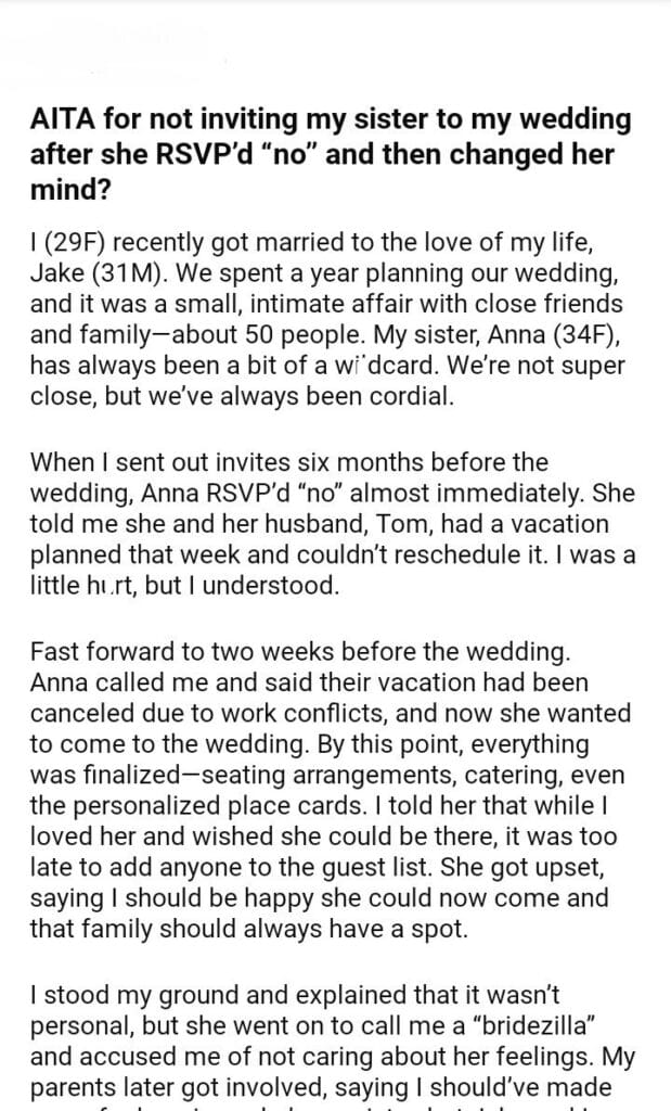 AITA for my sister to my wedding