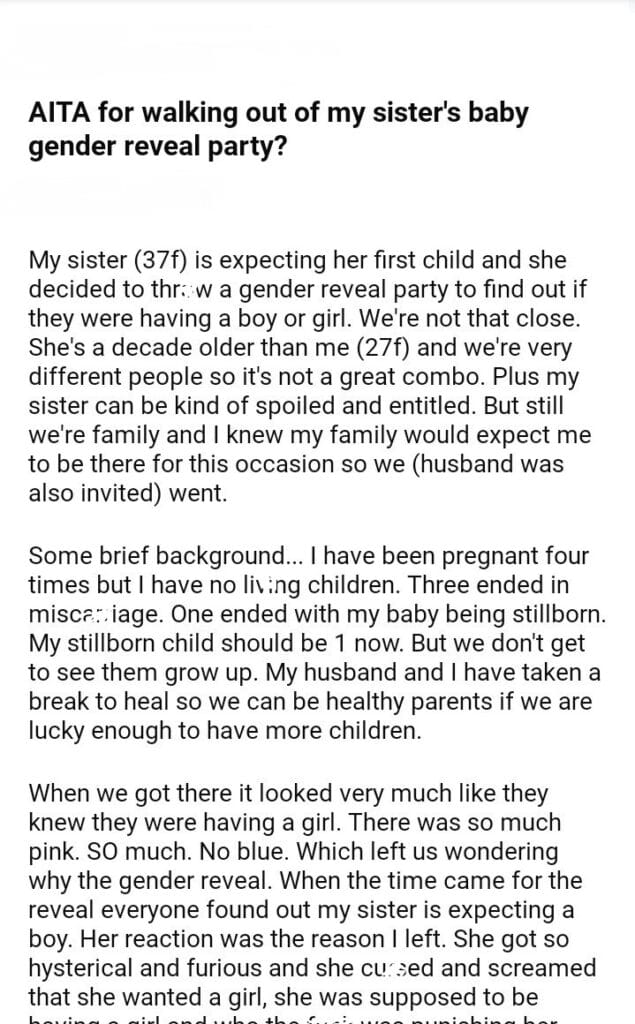 AITA for my sister’s baby gender reveal party?