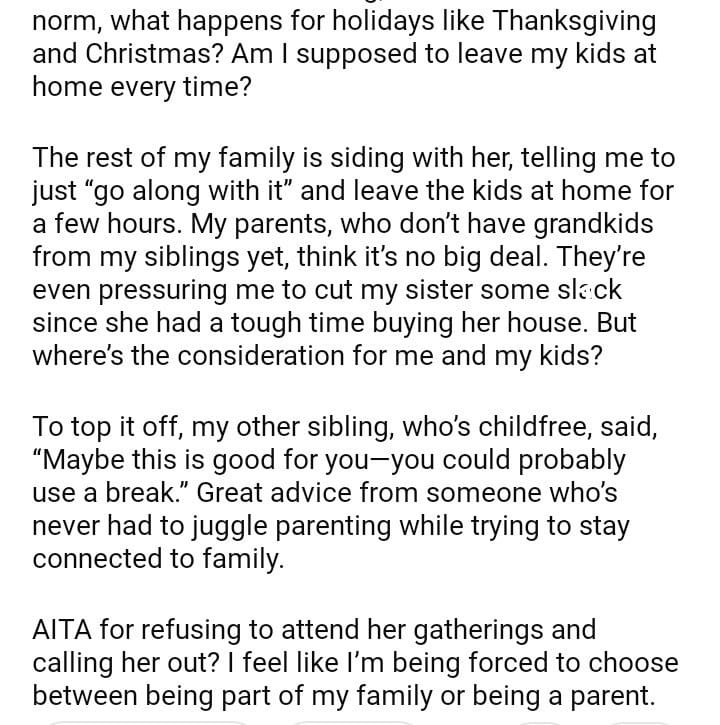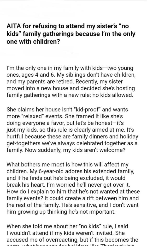 AITA for my sister’s “no kids” family gatherings