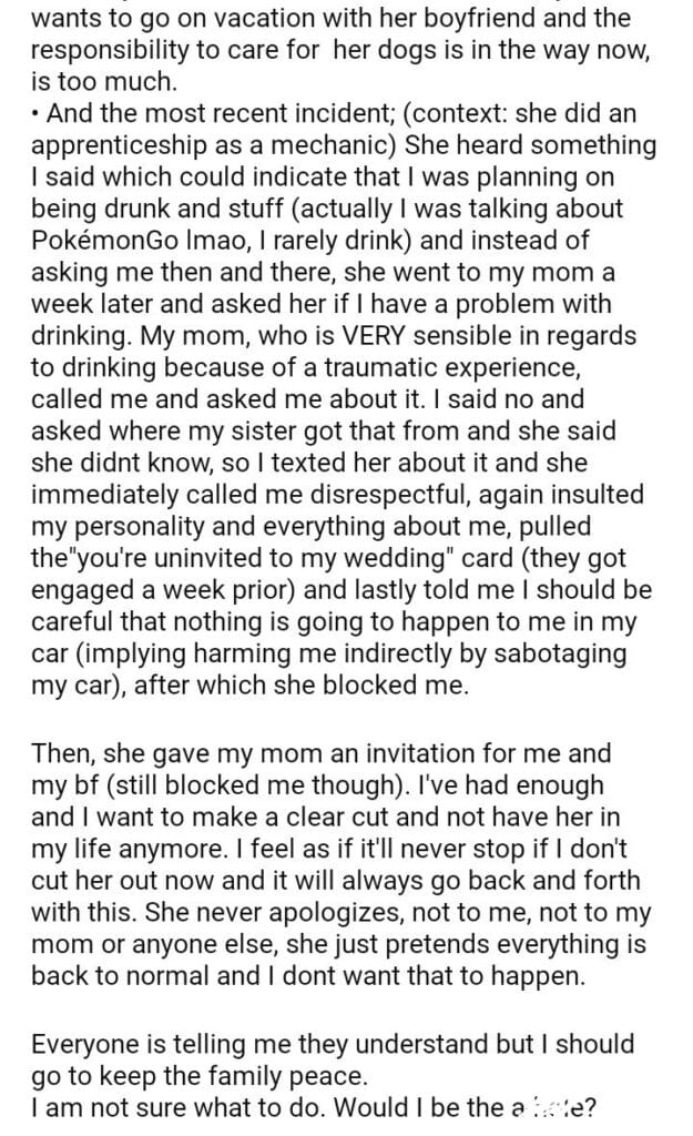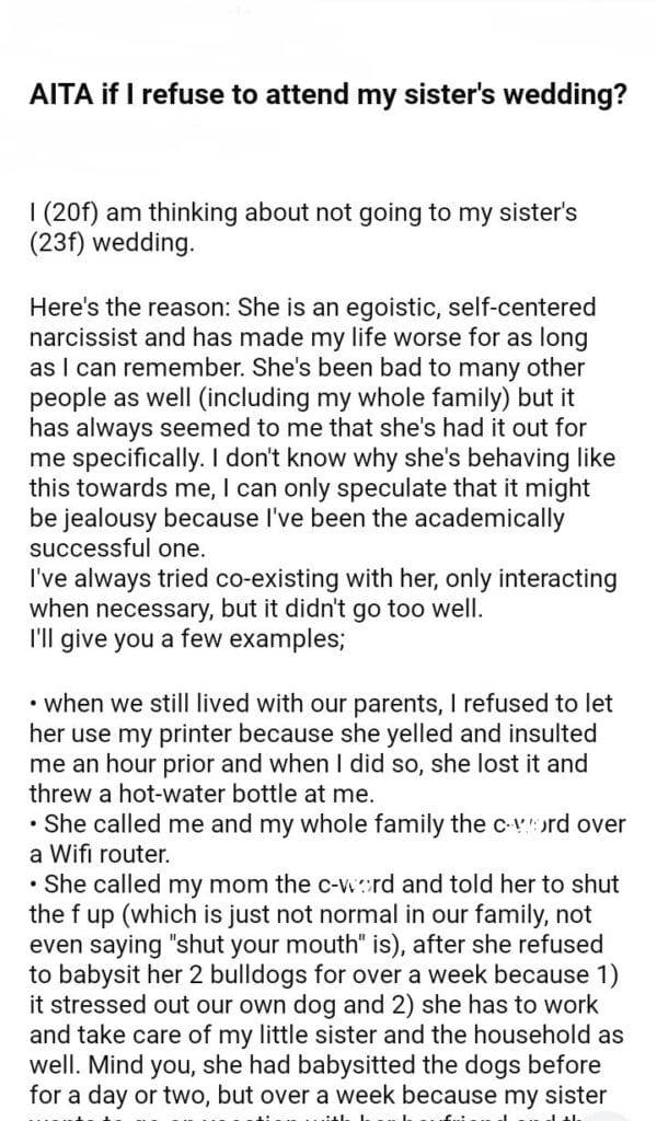 AITA for my sister’s wedding after what she did