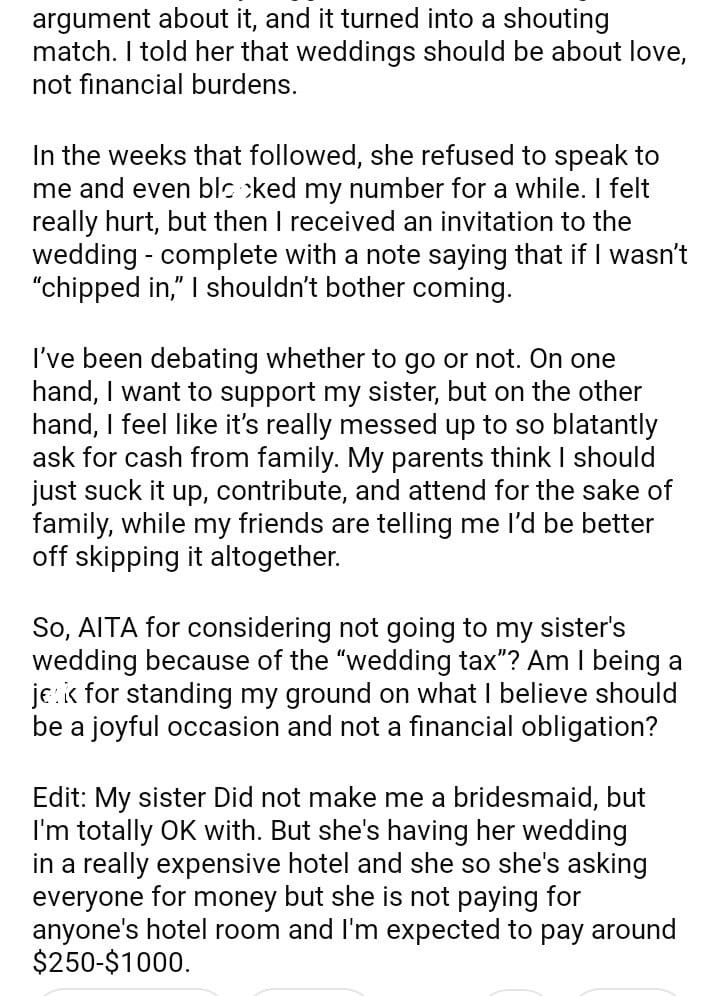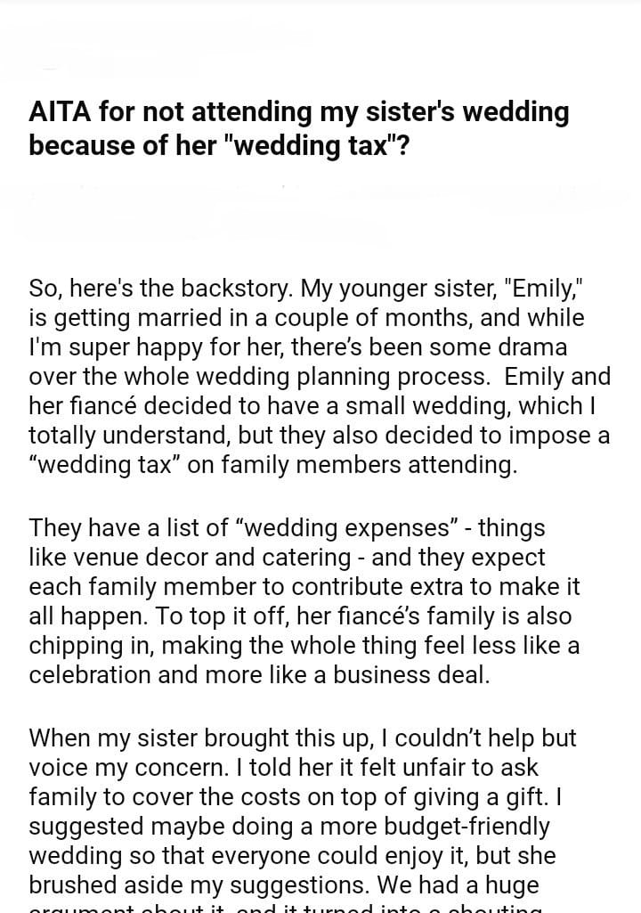 AITA for my sister’s wedding because of her
