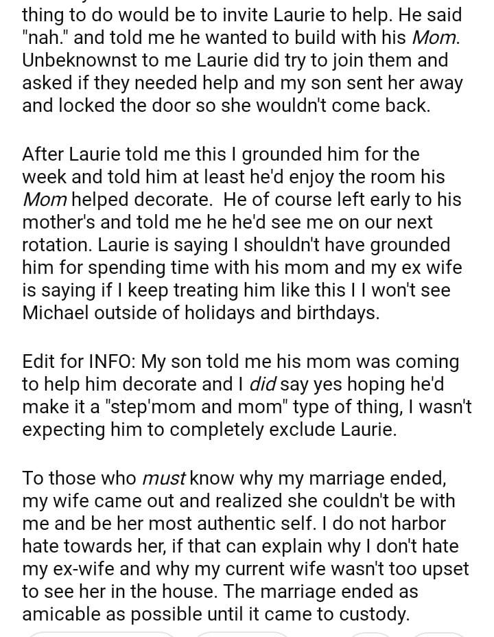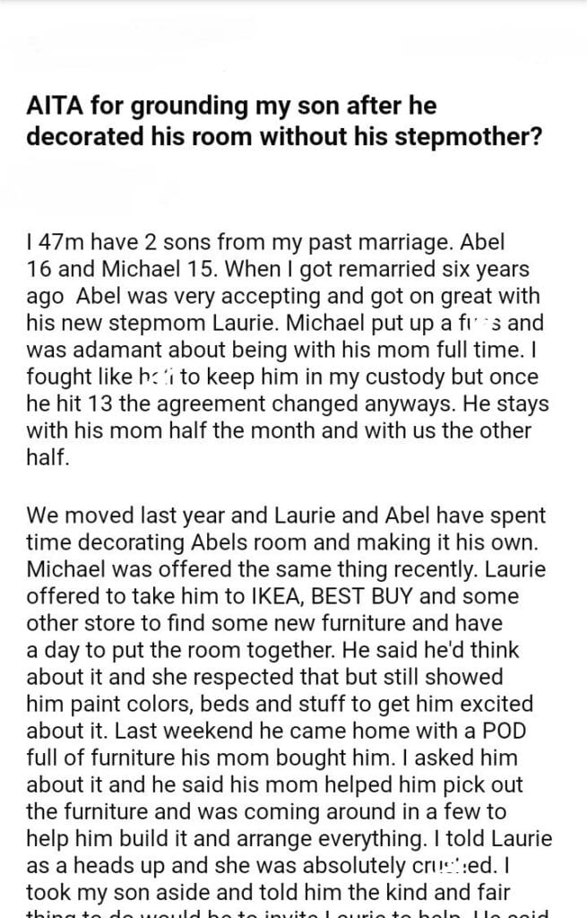 AITA for my son after he decorated his room without his stepmother?
