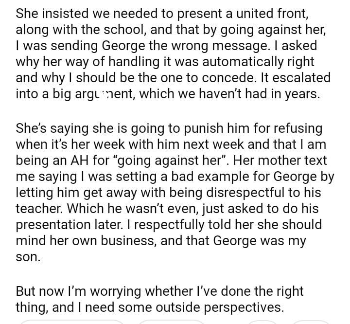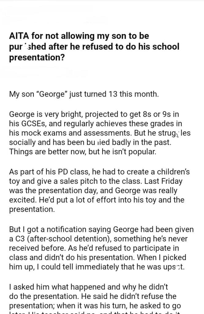 AITA for my son to do his school presentation?