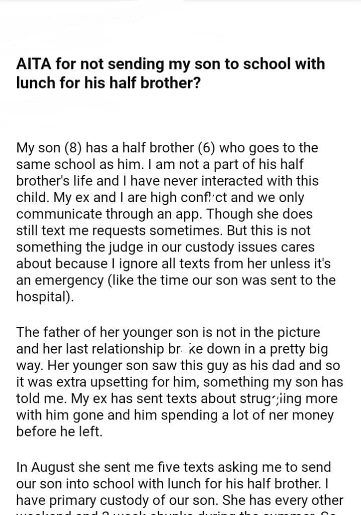 AITA for my son to school with lunch