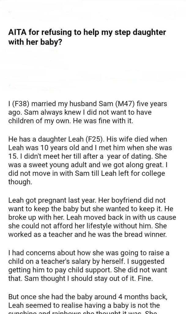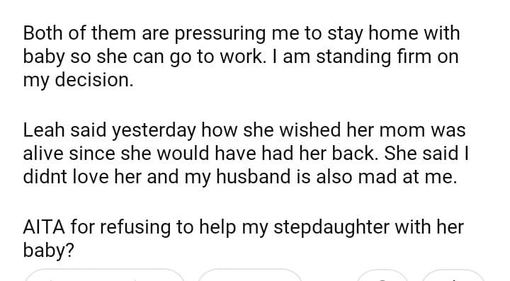AITA for my step daughter with her baby?