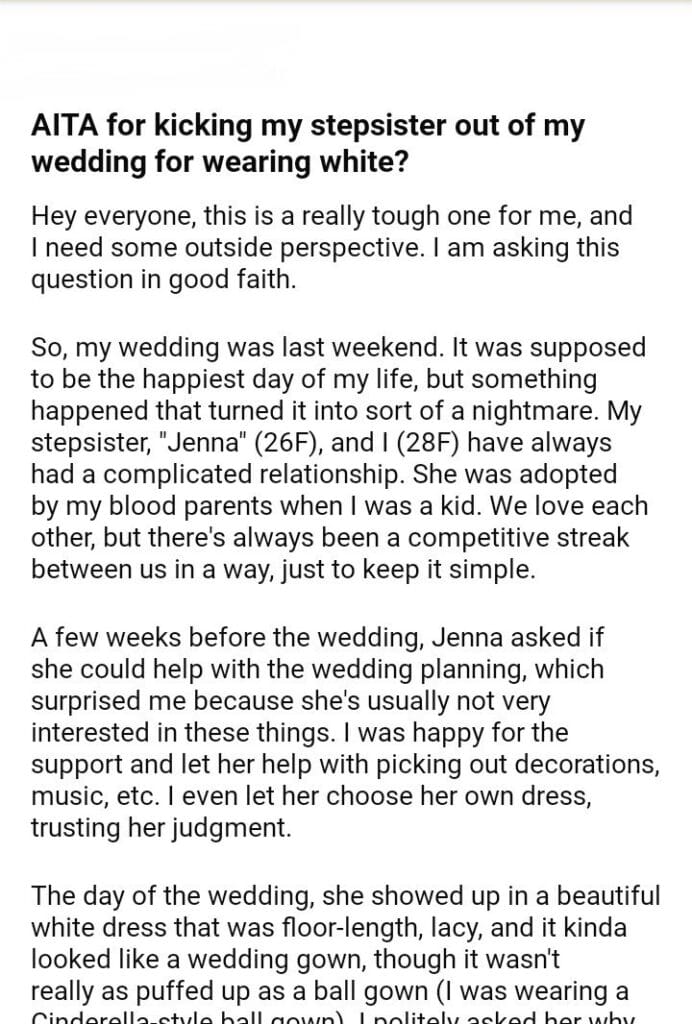 AITA for my stepsister out of my wedding