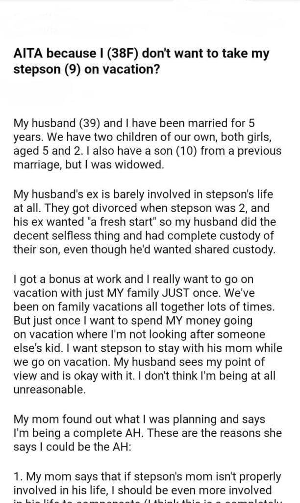AITA for my stepson (9) on vacation?
