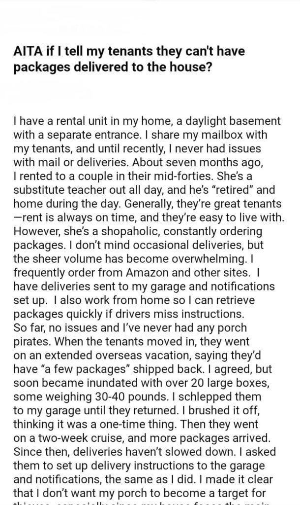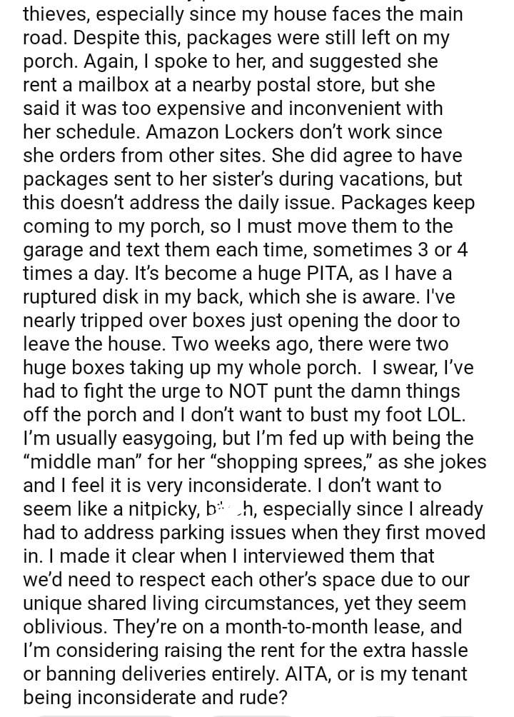 AITA for my tenants packages