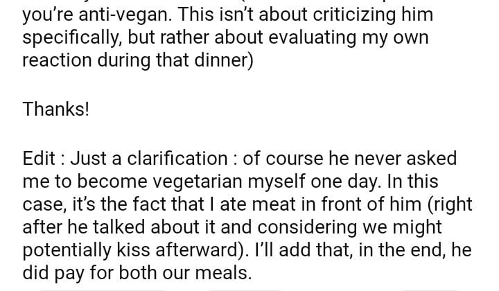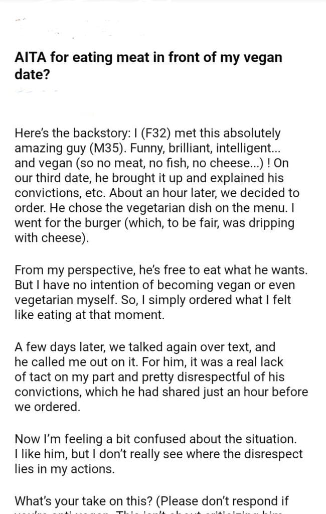 AITA for my vegan date?