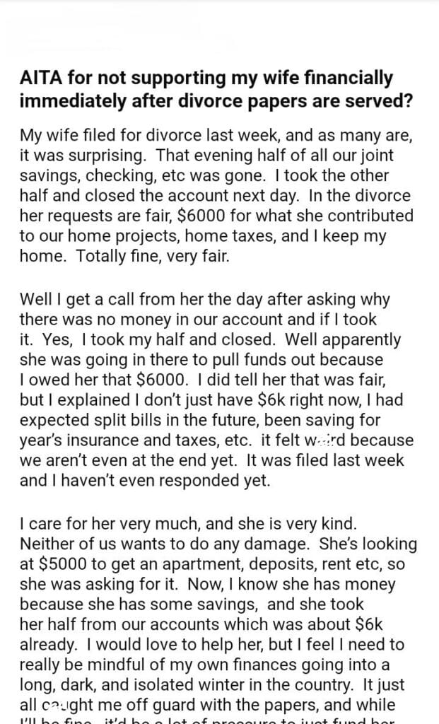 AITA for my wife after divorce papers are served?