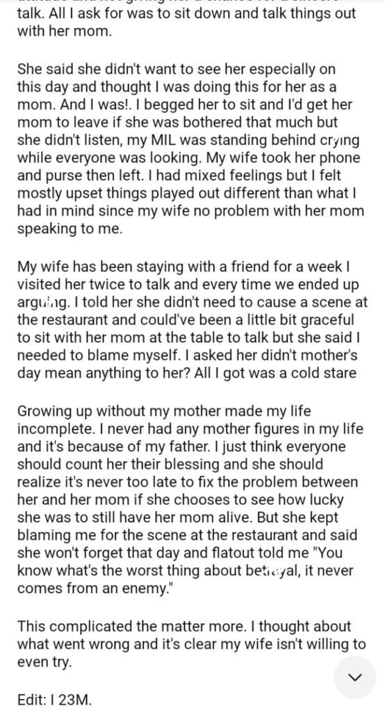 AITA For my wife scene at the restaurant?