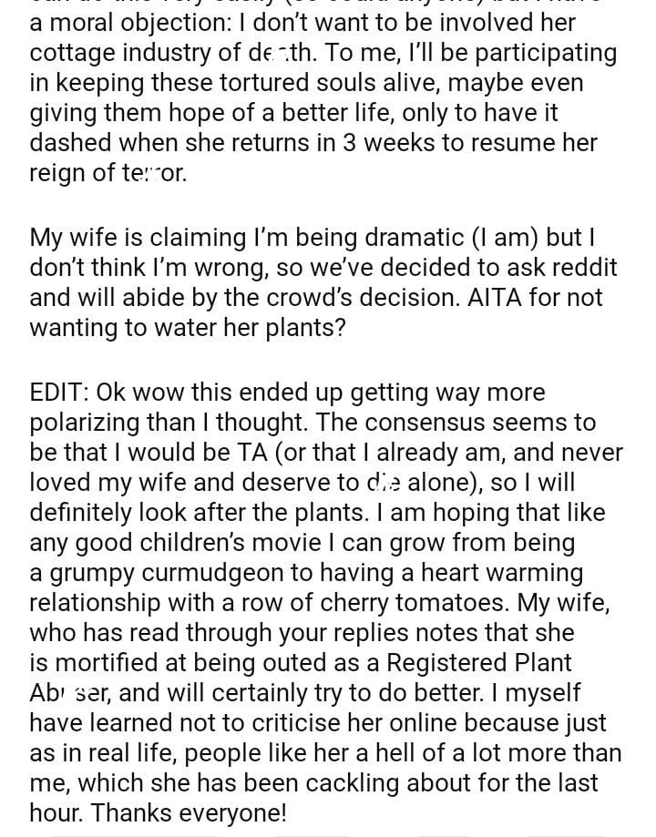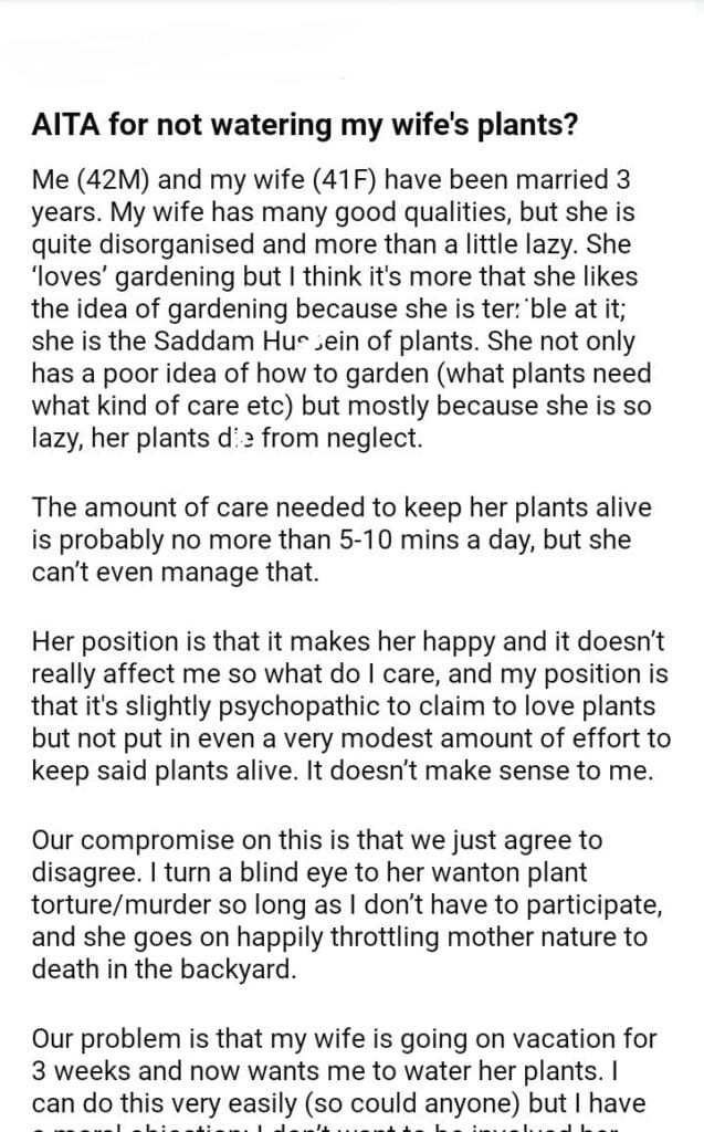 AITA for my wife’s plants?